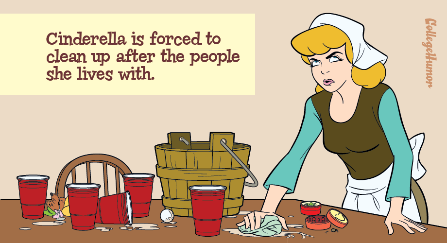 Disney Princesses at College for CollegeHumor.com written by Hallie Cantor. Cinderella and Tiana excerpts from the series. Full series at http://www.collegehumor.com/post/6946571/disney-princesses-reimagined-as-college-students